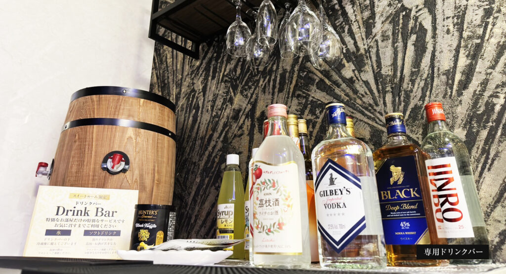 部屋に入った瞬間「おぉ…!」って声が出ました(笑) キングサイズのベッドがどーんとあって、60インチのテレビ、照明もおしゃれで雰囲気抜群。 特に嬉しかったのが高級コスメのレンタル(DIORとCHANELが置いてある!)。普段使えないブランドを自由に試せてテンション上がりました。 あと専用ドリンクバーがあるのも地味に神。滞在中いつでも飲み物取りに行けるし、スープやちょっとしたお酒もあって助かりました。